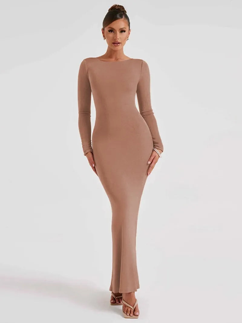 Bold, body-hugging maxi dress! Featuring a sleek long-sleeve design and a flawless curve-enhancing fit, it exudes elegance and confidence perfect for making a statement at any event.